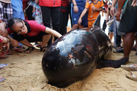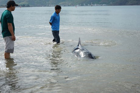 Không chỉ cá thường, cá heo cũng chết, chú cá này dài 3 m và nặng 100 ký. Thật buồn rằng chú chết mất rồi và trôi vào bờ biển VN. Cùng vietbf.com khám phá thêm.