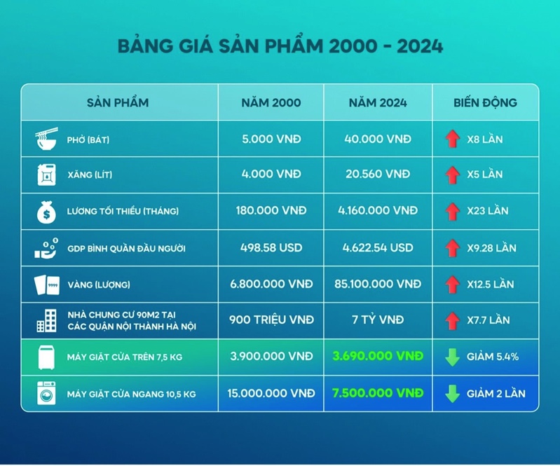 Mức độ tăng giá một số mặt hàng phổ biến giai đoạn 2000-2024 tại Việt Nam!