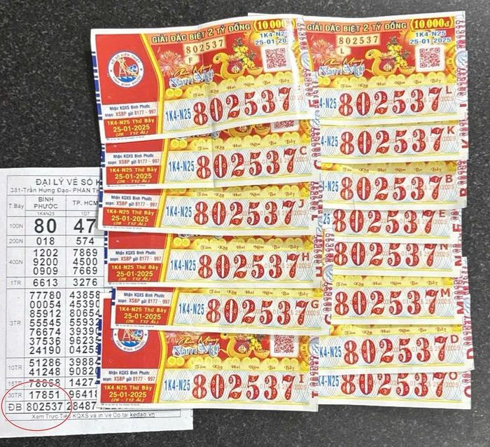 Được biết, vé số trúng thưởng do Công ty Xổ số kiến thiết tỉnh Bình Phước phát hành ngày 25-1 có ký hiệu 1K4-N25, với dãy số trúng giải đặc biệt là 802537.
