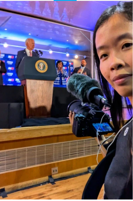 Với chuyên ngành phóng sự tài liệu, việc Minh Nguyệt đến với đoàn tranh cử tổng thống Mỹ của ông Joe Biden rất t́nh cờ.