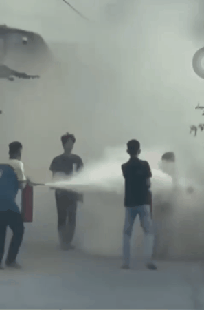 Phát hiện vụ việc, anh Nguyễn Duy Khang (sinh năm 2002, trú ấp Ngãi Hiệp, xã Hưng Mỹ, huyện Châu Thành) và Bùi Lê Quốc Tài (sinh năm 1999, trú ấp Huệ Sanh, xã Long Đức, TP. Trà Vinh) ở gần đó nhanh chóng cầm bình chữa cháy lao ra dập lửa thì bị Trung ngăn cản.