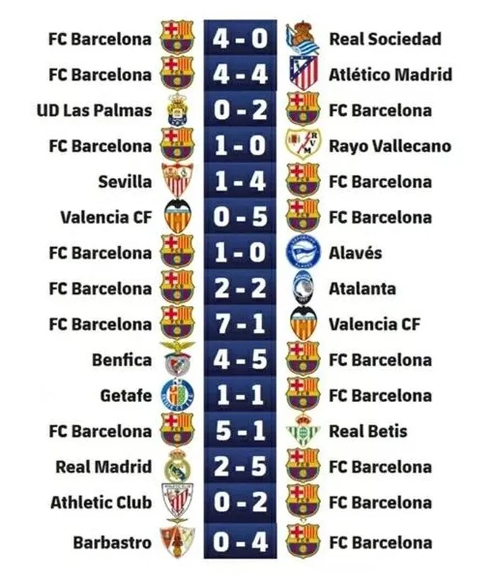 Đội chủ sân Nou Camp thắng 12, hòa 3, ghi 52 bàn và thủng lưới 16 lần. Tính trung bình, Yamal và đồng đội ghi 3,5 bàn mỗi trận đấu.