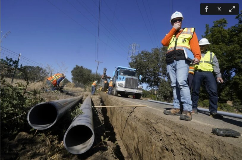 Các lănh đạo của Pacific Gas and Electric đang quan sát hoạt động chôn đường dây điện ở Vacaville, California, ngày 11/10/2023. Ảnh: AP