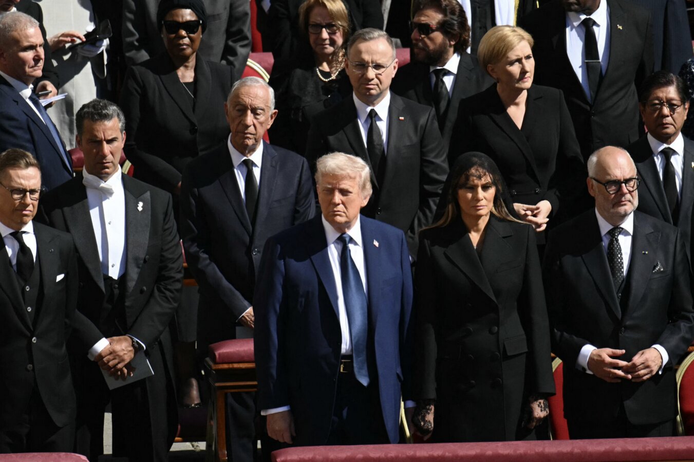 Hôm Thứ Bảy, 26 Tháng Tư, ở tang lễ Đức Giáo Hoàng Francis trên quảng trường St. Peter tại Vatican, Tổng Thống Trump đứng chung với một loạt nhà lănh đạo thế giới khác, như Tổng Thống Emmanuel Macron của Pháp, Thủ Tướng Keir Starmer của Anh, Tổng Thống Javier Milei của Argentina, và Thủ Tướng Giorgia Meloni của Ư. Tất cả những vị đó đều mặc đồ đen.