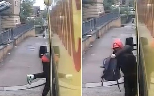 Trong video được camera giám sát trên xe ghi lại, người đàn ông mặc quần áo tối màu, đội mũ đỏ, đi giày trắng lại gần xe cứu thương. Anh ta dường như muốn đảm bảo an toàn trước khi ném một thứ gì đó vào cửa kính. Sau đó, người này chui đầu qua khe hở và lấy hai chiếc ba lô của nhân viên y tế, bỏ trốn khỏi hiện trường.