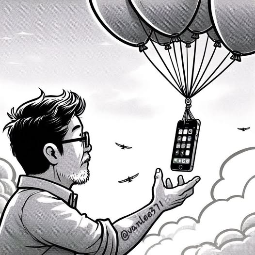 Nghe xong, giận quá, thấy có người đang bán bóng bay cho trẻ con trong công viên gần đó, ông Tuấn liền mua mấy chục quả bóng rồi buộc vào điện thoại, buông tay một cái...