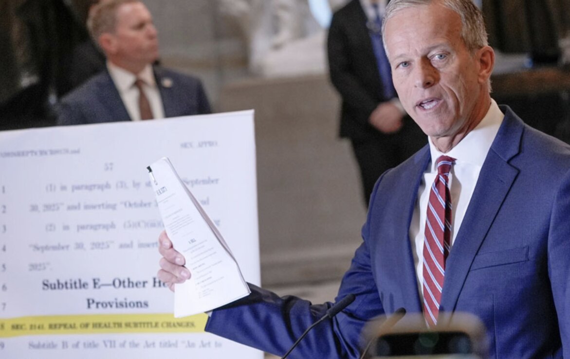 Ông John Thune, lănh đạo phe đa số của Đảng Cộng ḥa tại Thượng viện, tại cuộc họp báo ở trụ sở Quốc hội Mỹ ở thủ đô Washington hôm 3-10.