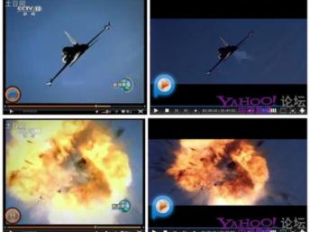 Một blogger Trung Quốc đă đăng tải song song h́nh ảnh từ bản tin của CCTV và từ bộ phim Top Gun cho thấy ảnh trong hai phim khác nhau lại hoàn toàn giống nhau. Một blogger khác ghi nhận là h́nh thù, hướng bay của các mảnh vỡ, và khói tỏa ra sau vụ nổ giống hệt nhau trong hai bản phim. Blogger này đă mỉa mai : "CCTV là vua quay cóp".