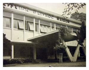 Trụ sở Viện Đại Học Sài G̣n cạnh bên Hồ con rùa (góc đường Duy Tân - Trần Quư Cáp). Trước 1975, các trường ĐH công lập như Luật khoa, Văn khoa, Kiến trúc, Dược khoa và Y khoa v.v... đều là các Phân khoa thuộc Viện ĐH Sài G̣n. (H́nh ảnh và ghi chú trích từ "flickrer" manhhai)