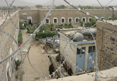 Một nhà tù tại Kandahar, phía xa là rặng núi do Taliban kiểm soát. Ảnh: