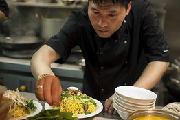 Thế nhưng, sự nổi bật lớn trong sự t́m ṭi mới mẻ của ông Bùi có thể là nhà hàng Cây Tre, ở đó thực đơn tương đối rất ít món. “Chúng tôi không thích những quyển thực đơn hết trang này qua trang khác với các món ăn khác nhau. Chúng tôi sẽ chỉ có hai chọn lựa cho thực khách về nước chấm, dù đó là ăn với thịt lợn, thịt ḅ, lươn, mực hoặc cá. Như thế sé đỡ phí phạm và có thể tập trung vào nước chấm thực sự tươi,” ông nói. “Tôi cũng cho rằng những thực đơn lớn cho thấy nhà hàng sợ khách không thích món ăn của ḿnh làm ra, c̣n chúng tôi th́ đủ tự tin khi đưa ra chọn lựa cho khách cua ḿnh.”
