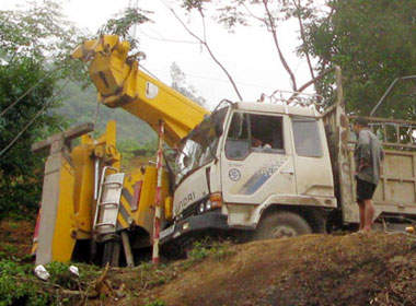 Trong lúc các cặp mắt đều đang đổ dồn về những đường cáp thép thì có tiếng la hoảng loạn đến mức lạc giọng: “Chạy đi, xe mất phanh đấy”. Mọi người giật mình nhìn ngược lên đỉnh đèo thì thấy dân tình chạy nháo nhạc dạt sang hai bên, ngay sau đó thình lình một chiếc ôtô tải màu trắng, loại 5 tấn (hiệu Hyundai) vọt ra từ khúc cua, ầm ầm lao xuống vị trí 2 chiếc cứu hộ đang “xuống tấn” chắn ngang đường đèo”.