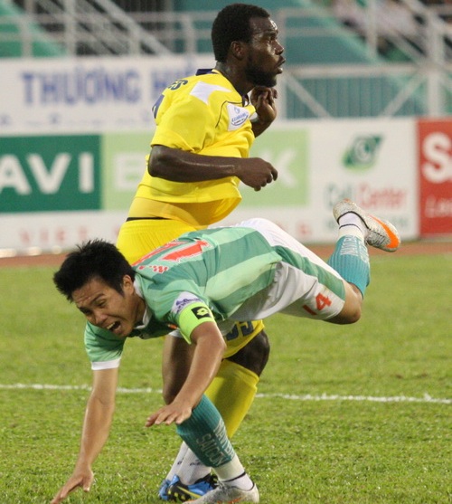 | Ở trận lượt đi mùa này, dù được đá trên sân nhà nhưng N.SG vẫn gục ngã trước SLNA. Ảnh: V.V |
