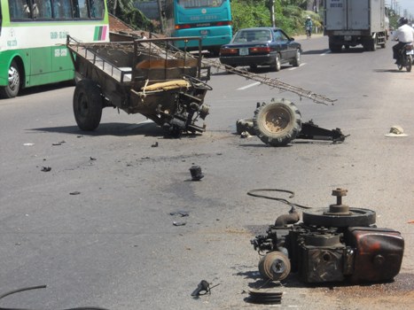 – Sau cú tông mạnh, đầu máy, bánh xe,thùng xe chiếc công nông bị đứt lìa, văng ra từng mảnh cách nhau hàng chục mét.