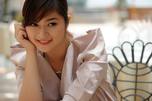 Nụ cười tươi tắn, trang phục giản dị nhưng sang trọng, cô nàng có gương mặt giống Diễm Hương xuất hiện trong buổi ra mắt phim "Chàng trai không biết ghen".
