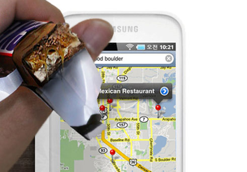Hãng này đăng quảng cáo máy nghe nhạc giải trí Galaxy Player 5 nhưng trên màn hình lại sử dụng dịch vụ bản đồ của iPhone.
