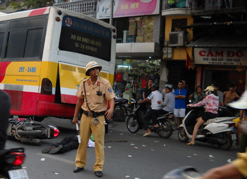 Khi đến trước cửa số nhà 108 phố Lê Duẩn, đang lưu thông ở tốc độ cao va chạm mạnh, không may người thanh niên khoảng 30 tuổi đã bị chiếc xe buýt trên đâm phải, bánh sau của chiếc xe này cán vào phần đầu của người lái xe máy khiến nạn nhân tử vong tại chỗ.