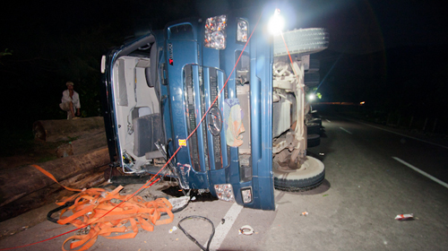 Khi xe này xuống dốc đèo Xuân Hải, do số gỗ trên xe quá nhiều nên đổ nghiêng. Tài xế không làm chủ được tay lái nên xe bị lật.