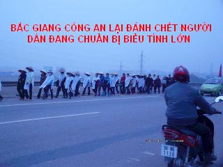 Người bị đánh mới chết, đàn áp rất dã man. Địa chỉ của những người dân bị đàn áp là thôn Quyết Tiến, xã Tiền Phong , huyện Yên Dũng, tỉnh Bắc Giang. Hiên nay người dân sẵn sàng tiếp tục biểu tình bất cứ lúc nào. CA dùng cơ động, chó săn, dùi cui đàn áp rất thô bạo. Rất khó có 1 vụ bạo động nữa, nhưng biểu tình tiếp tục là hoàn toàn có thể.