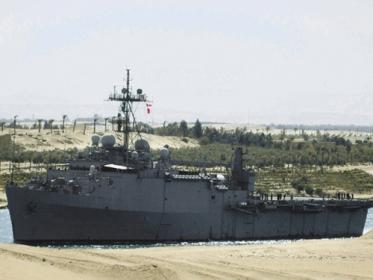 Tàu đổ bộ USS Ponce của Mỹ lưa thông tại Kênh đào Suez hồi tháng 3-2011. - Ảnh: AP