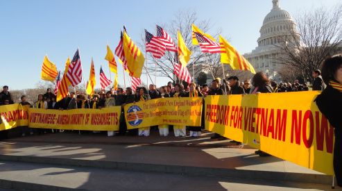 Chúng tôi có lẽ là phái đoàn đầu tiên có mặt tại tiền đường Quốc Hội, chúng tôi chụp h́nh lưu niệm, rồi xe này đến xe khác, cộng đồng này, đến cộng đồng khác tấp nập, nhộn nhịp, chúng tôi được phát bảng tên do đă ghi danh trước, những thủ tục an ninh căn bản để vào trong Quốc Hội , hôm đó cũng là dịp người Mỹ gốc Do Thái có cuộc vận động hành lang, nhưng so với người Việt chúng ta th́ chiếm đa số áp đảo . Thực sự cũng có sự lúng túng, lộn xộn lúc ban đầu, v́ sự hiện diện qúa đông của đồng hương, ngoài dự trù của ban tổ chức , nhưng sau đó, dần dà cũng đi vào ổn định, tôi nhận thấy tinh thần làm việc tích cực của các cơ quan truyền thông báo chí, của quư anh chị trong ban tổ chức, những khuân mặt thân quen và vô cùng nhiệt t́nh mà tôi trân trọng: Tiến sỹ Nguyễn đ́nh Thắng và cựu Dân Biểu Cao Quang Ánh, xốc vác, năng nổ . Tiểu bang Massachusetts chúng tôi chắc ăn đă gởi hai bạn trẻ Ngô Triệu Vũ và Chiêm bảo Nghi đi trước để làm việc cụ thể với ban tổ chức, chúng tôi cũng đă làm hẹn với các Thượng nghị sỹ và Dân Biểu Tiểu bang nhà để tiếp xúc và làm việc, nói chung, phái đoàn Massachusetts chẳng những tiếp xúc, làm việc đúng giờ theo hẹn và được tiếp đón thân t́nh với các Nghị sỹ, Dân biểu người nhà, cộng thêm cách tŕnh bày ngắn gọn nhưng xúc tích và đầy đủ, rơ ràng của cháu Đan Thanh làm cho quư Nghị Sỹ, Dân Biểu nắm bắt được yêu cầu, nguyện vọng của phái đoàn một cách nhanh chóng, chúng tôi c̣n phụ với nhiều đồng hương của các Tiểu bang khác trong các lần tiếp xúc với các Nghị sỹ, Dân biểu địa phương cho thêm khí thế. Buổi tiệc do ban tổ chức khoản đăi tại pḥng B400 tại Toà nhà Quốc Hội ( h́nh như thực phẩm chính do Cựu Dân biểu Cao quang Ánh khoản đăi ) pḥng hơi chật so với số lượng người qúa đông, khí thế vô cùng sôi nổi, hào hứng, một số Thượng Nghị sỹ, Dân biểu cũng hiện diện và có những lời phát biểu mạnh mẽ ủng hộ Nhân quyền cho Việt Nam, ủng hộ việc đưa Việt nam trở lại danh sách các quốc gia cần quan tâm về nhân quyền và tự do tôn giáo, sau đó Tiến sỹ Nguyễn đ́nh Thắng đề nghị mọi người cùng di chuyển qua sân hông Quốc Hội cho thoáng mát . Ngay ngày hôm sau, kết qủa là : Ủy ban đối ngoại Hạ viện Mỹ thông qua Dự luật Nhân quyền Việt Nam vào ngày 07 tháng 03 năm 2012 sau hai ngày Hành pháp và Lập pháp Mỹ có các buổi tiếp xúc và làm việc với phái đoàn hàng trăm người Việt hải ngoại hôm mồng 5 và 6 tháng 3 năm 2012 tại Thủ đô Washington DC về vấn đề thúc đẩy Việt nam tôn trọng Nhân quyền , dịp này Dân biểu Chris Smith phát biểu : “Chính phủ Hoa kỳ cần gởi một thông điệp rơ rệt cho chế độ đang cầm quyền tại Việt nam rằng, họ phải chấm dứt các vi phạm nhân quyền đối với chính công dân của họ.” (VOA 08 tháng 03