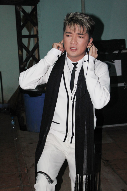 Trong khi Minh Quân không ngừng khôi hài với các động tác dancesport, Mr.Đàm lại có vẻ căng thẳng tập lời bài hát.