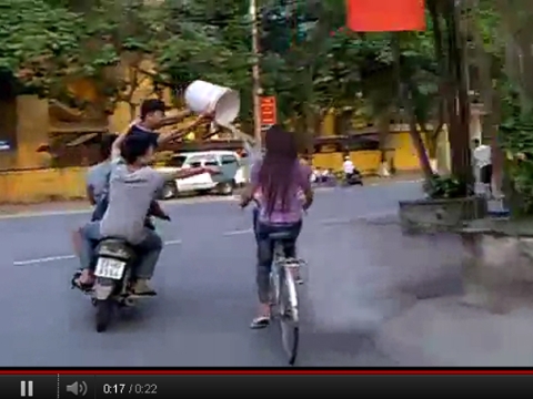 TPO - Mấy ngày nay clip ba thanh niên đi xe máy hất nước vào mặt các thiếu nữ trên đường tại trang Youtube khiến cư dân mạng phẫn nộ.