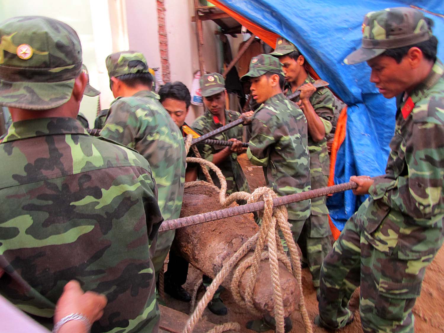 Lực lượng Công binh di dời hai quả bom đi nơi khác. |