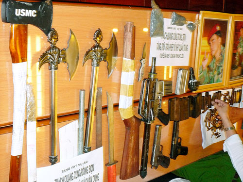 | Súng và hung khí của Quang cùng đồng bọn. |