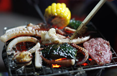 Tuy giá cả không “mềm” như các nơi khác nhưng phố đồ nướng Mă Mây luôn chật cứng thực khách bởi các món nướng độc đáo như: râu mực nướng than hoa, ḷng nướng Hàn Quốc… ít nơi ngon bằng.