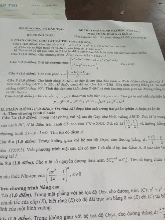 Hạ Điểm Chuẩn, thí sinh thi đại học lần thứ nhất đã không làm được câu khảo sát hàm số. Chuẩn lý giải do hôm nay quên không mang Bảng tuần hoàn .