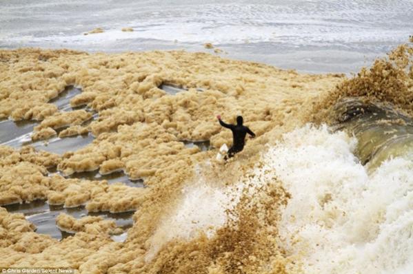 Anh Chris cũng cho biết thêm, 3 chàng trai mạo hiểm nói trên đã “cưỡi” trận bọt biển trong 20 phút trước khi quay trở lại bờ. Anh nói thêm: “Cơn sóng bọt dần tan biến. Cảnh tượng đặc biệt này không kéo dài và tôi rất may mắn khi chụp lại khoảnh khắc đó”.
