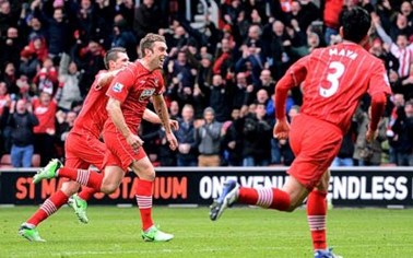 Đội chủ nhà khởi đầu tốt và có ngay 2 cơ hội ăn bàn của Jay Rodriguez, đầu tiên là một cú bắt vô-lê vọt xà sau cú đánh đầu đập đất của Rickie Lambert, và sau đó Rodriguez thoát khỏi Terry với một động tác khá sáng tạo nhưng lại sút vào tay Petr Cech.