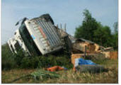 Chiếc xe tải chở đầy gỗ đang lưu thông trên đường thì tài xế bất ngờ mất lái đâm thẳng xuống vệ đường. Tài xế và phụ xe đã kịp thời nhảy ra ngoài nên không có thiệt hại về người.