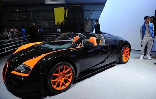 Một thiếu gia Trung Quốc đặt ngay tiền mặt 6,5 triệu USD mua chiếc Bugatti Veyron 16.4 Grand Sport Vitesse WRC ngay tại triển lãm ô tô Thượng Hải.