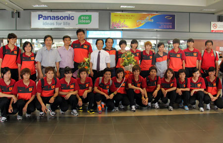 Các nữ cầu thủ Việt Nam được chào đón nồng nhiệt
