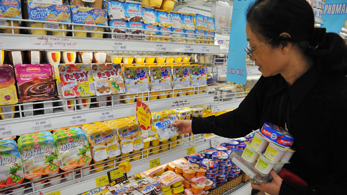 Khách hàng hoa mắt với các loại váng sữa nhập khẩu tại các cửa hàng, siêu thị - Ảnh: T.Đạm