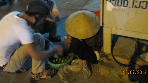 Khi thành phố lung linh với đủ sắc màu rực rỡ của ánh đèn thì tại một góc nhỏ của cây xăng ( cạnh chợ Cống Vị - Đội Cấn, Hà Nội) bà cụ vẫn ngồi đó, vẫn miệt mài chào khách mua chanh. Vào thời điểm 7-8 giờ tối khi mọi người đang tất tả lo bữa cơm cho gia đình sau một ngày làm việc, thì đối với bà cụ đấy mới là thời gian để cụ bán chanh kiếm tiền mưu sinh.