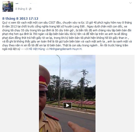 Sau khi tung clip tố CSGT ăn hối lộ, chủ nhân của clip này đã giãi bày trên trang facebook cá nhân của mình rằng cảm thấy lương tâm cắn rứt và mệt mỏi vô cùng.