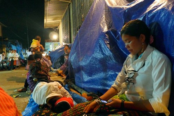 11h đêm, phụ nữ Mông ngã lưng vào bất cứ những chỗ nào có thể để ngủ.