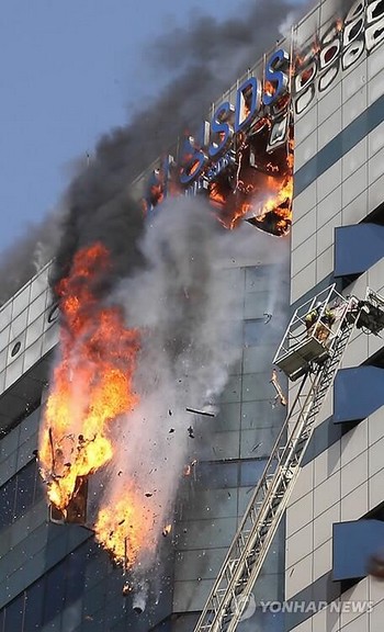 H́nh ảnh vụ cháy nghiêm trọng tại ṭa nhà chứa trung tâm dữ liệu của Samsung