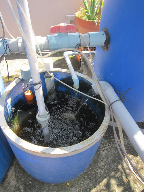 Cá lội tung tăng trong bể chứa mini theo mô hình Aquaponics