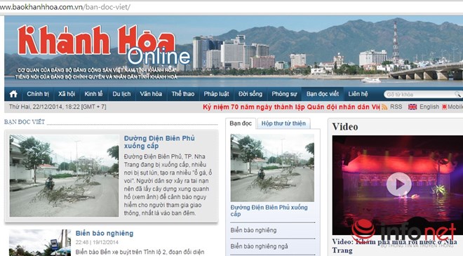 Ngày 17/12, Cục trưởng Cục PTTH&TTĐT (Bộ Thông tin và Truyền thông) Hoàng Vĩnh Bảo đã ký Quyết định số 204/QĐ-XPVPHC xử phạt trang tin điện tử của báo Khánh Hòa 20 triệu đồng.