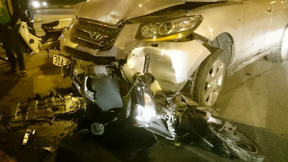 Vietbf.com - Một chiếc ô tô Santafe 7 chỗ màu bạc BKS 30A - 585.65 đã va chạm với xe Huyndai Grand i10 4 chỗ BKS 30A 753.65, mà xe Santafe không dừng lại để nói chuyện đền bù nên cả hai cùng truy đuổi với nhau gần Keangnam đã đã xảy ra một vụ tai nạn giao thông nghiêm trọng khiến nhiều người bị thương, 2 xe máy và 1 ô tô bị hư hại cùng một cô gái tử vong.