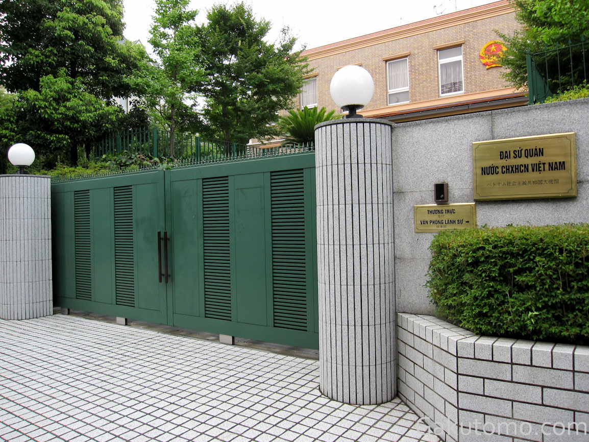 2-ベトナム大使館は、とても立派です。こ ちらが正門です。 ベトナムにしては、 こんな一等地に建てて 、信じられない大きさです