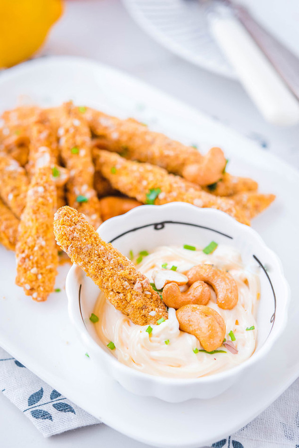 - Nguyên liệu tẩm để chiên: 2 quả trứng; 80g bột bắp; 80g vụn bánh mỳ hoặc bột chiên xù, 80g hạt điều; 10g vừng trắng rang chín.