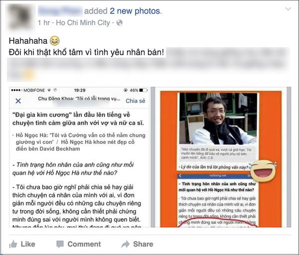 Ông Chu Đăng Khoa trả lời: "Tôi chưa bao giờ nghĩ phải chia sẻ hay giải thích chuyện cá nhân của mình với ai, vì đơn giản mỗi người đều có những câu chuyện riêng tư trong đời sống, không cần thiết phải chứng minh đúng sai với người mình không quen biết. Nhưng đến lúc này, mọi thứ đang đi quá xa nên tôi phải lên tiếng để bảo vệ những người tôi quan tâm không trở thành tâm điểm của dư luận".