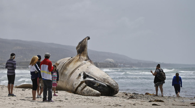 Xác con cá voi khổng lồ trôi dạt vào bờ biển San Clemente, thuộc tiểu bang California, Mỹ ngày 26/4 dài 12m và nặng tới 30 tấn. Con cá voi xấu số được xác định thuộc loài cá voi xám và đã chết trước khi dạt vào bờ một khoảng thời gian.