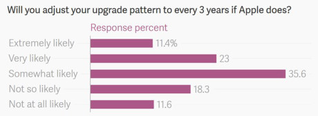 Một cuộc khảo sát được tiến hành bởi Quartz cho thấy, có ít hơn 10% người dùng iPhone sẽ nâng cấp lên phiên bản tiếp theo của thiết bị nếu mô hình không được thiết kế lại.