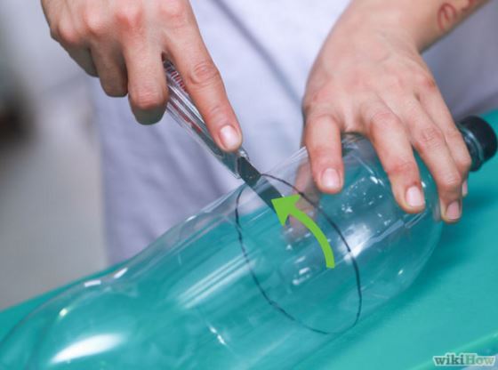 – Cắt nửa phần trên của chai nhựa ra.